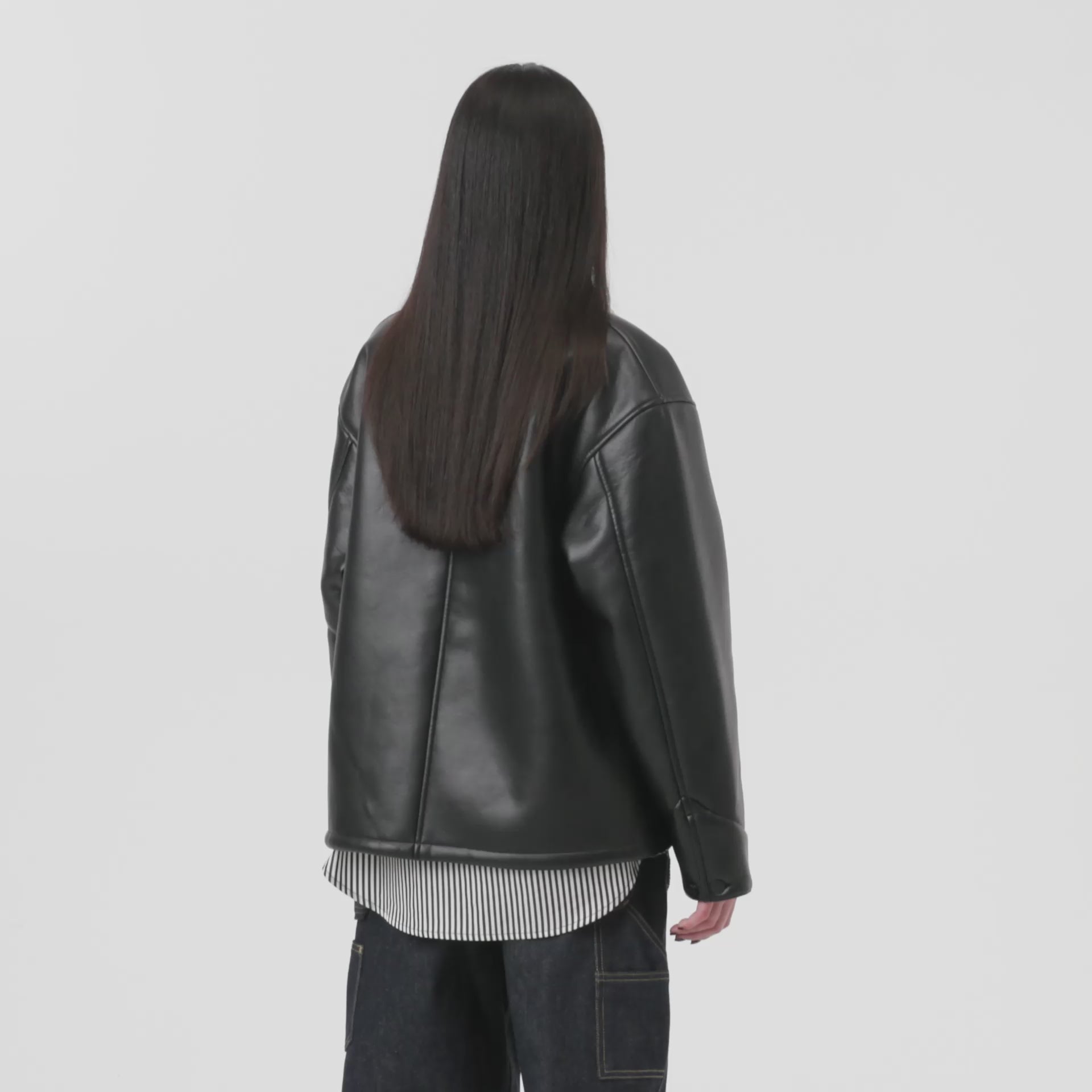 The Women's Shepton OG Michigan Coat is made from artificial leather, featuring a tactile pile lining and collar. Inspired by the silhouette of a classic chore coat, the style features four patch pockets on the front, one of which has a buttoned flap. A woven Square Label completes the design.