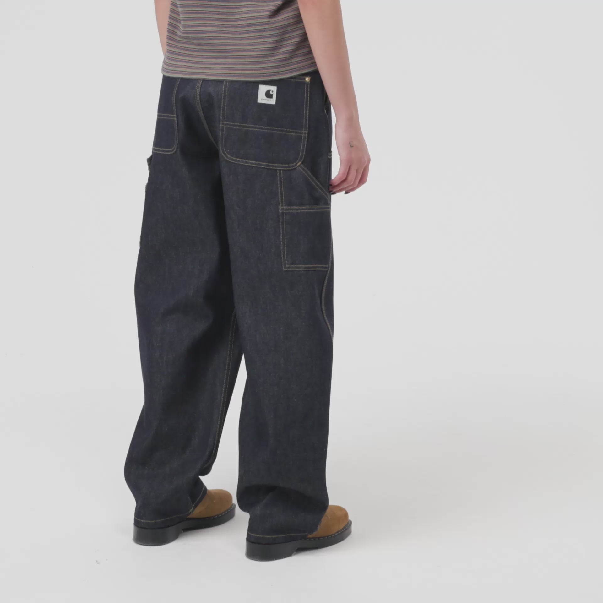 The Women's Brandon Double Knee Pant is made from a heavyweight cotton denim and cut in a loose fit with a regular waist. The item is detailed with utilitarian bartack and triple stitching, as well as double-layer knees, tool pockets and a hammer loop. A woven Square Label completes the design.
